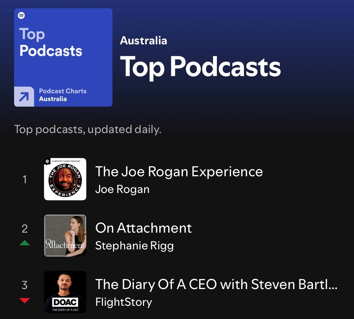 PS. Speaking of the podcast — this episode went wild last week with over 300,000 downloads! Here’s me sitting at #2 on the Spotify Australia podcast charts